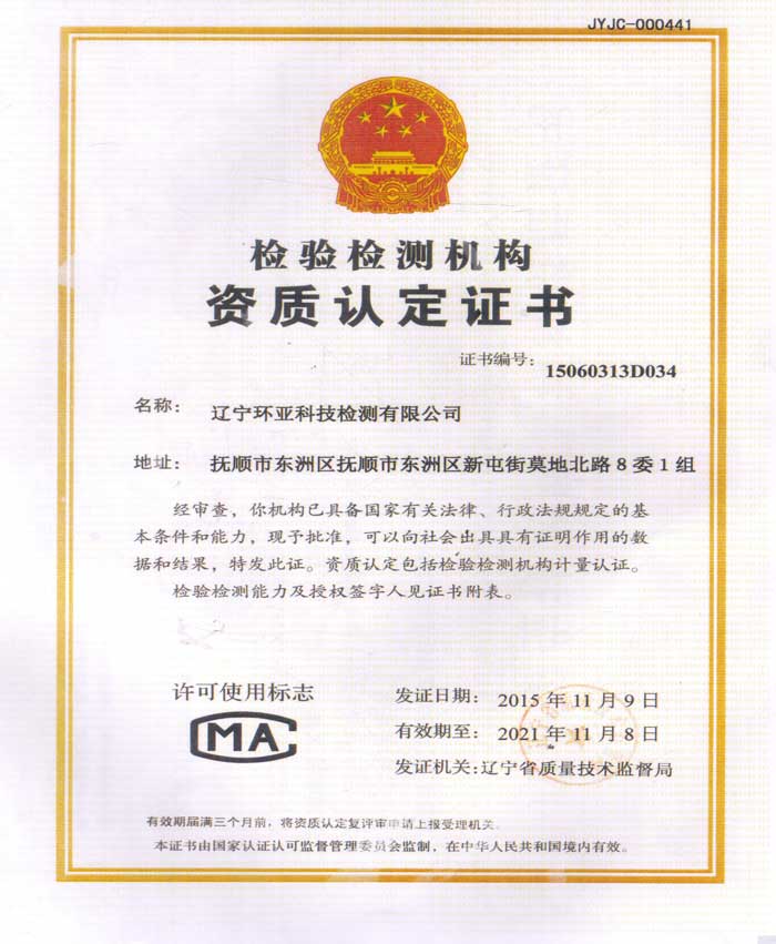 遼寧環亞科技檢測有限公司秉承“公平、公正、客觀、真實”的服務理念,力求為遼寧省各企事業等用人單位提供更優質的服務,公司領導率領全體員工歷時一年零八個月的時間操練各項基本技能,于2016年8月9日取得了(遼)安職技字(2016)第B-0019號《職業衛生技術服務機構資質證書》